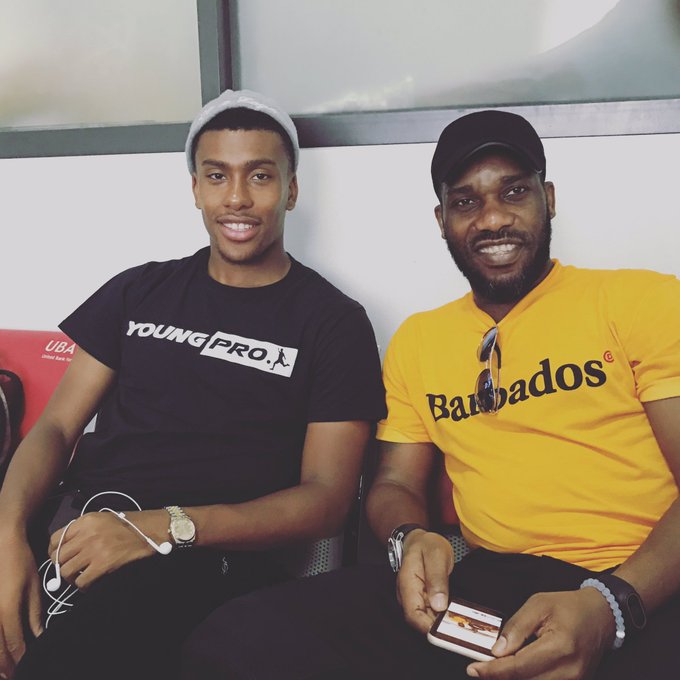 The Arsenal younger who wowed fans all over the world with his amazing skills as he recreated Okocha's rainbow flick during Nigeria's World Cup qualifiers against Algeria in Uyo last weekend, shared a picture him and the African football icon and ex-Super Eagles captain as they waited to check into their flight back to Europe on Sunday.